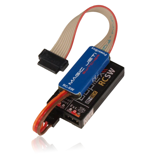 The Magic Jeti Switch makes it possible to switch any PowerBox on and off from the transmitter. It forms the ideal complement to any PowerBox system which is installed in an inaccessible location, or in a model where an external switch is not desirable.